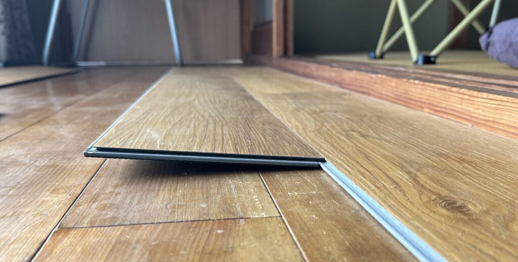 「板を並べて、はめていくだけ」。 最初はそんな風に高を括っていました。ところが、いざ作業を始めると、床板同士がどうしても噛み合わない。床板同士をはめても浮き上がってしまって作業が前に進みません。